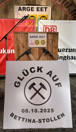 Am 08. Oktober würdigte die DB den Start der Sprengarbeiten mit einer Feierlichkeit am Ostportal in Brilon-Wald. Im Rahmen des Programms wurde auch die Patin für den neuen Rettungsstollen in ihr Amt eingeführt: Bettina Feldhausen, Leiterin Stakeholdermanagement bei der DB InfraGO AG in NRW, ist nun offiziell die irdische Vertreterin der Heiligen Barbara, Schutzpatronin für den Tunnelbau. Denn die Arbeiten sollen traditionsgemäß stets unter dem Schutz der Heiligen Barbara stehen.